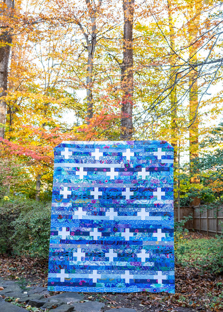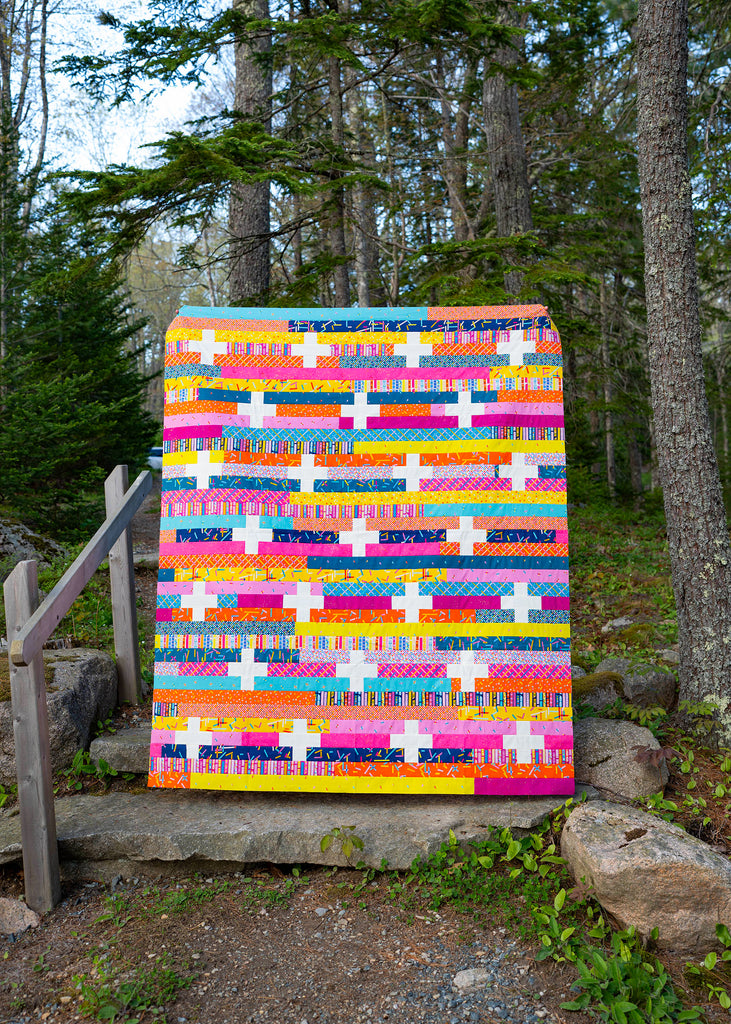 Jelly Plus is a fun and unique jelly roll pattern! With only straight cuts and seams, this quilt sews up quickly. It’s the perfect choice for when you need a fast quilt or if you just want a special quilt that shows off a lot of fantastic prints! Finished size is 62" x 74".