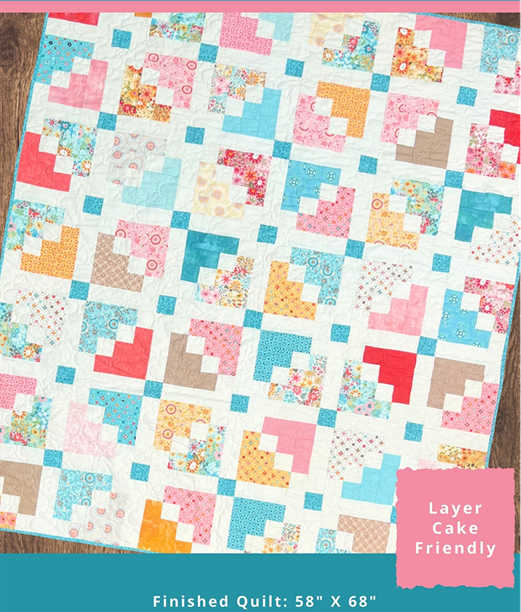 Layer Cake Friendly quilt pattern that measures 58" X 68" perfect for any season.