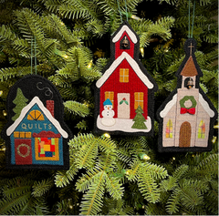 CUTE +++ COZY +++ QUICK "Homes for the Holidays" - Set B ~ This enchanting set includes charming homes away from home: a Quilt Shoppe, a Little Red Schoolhouse, and a Country Church. From a delightful 5¾” to 6¾” in height, these enchanting pieces add a warm and whimsical touch to your Christmas tree. Each one stitches up...