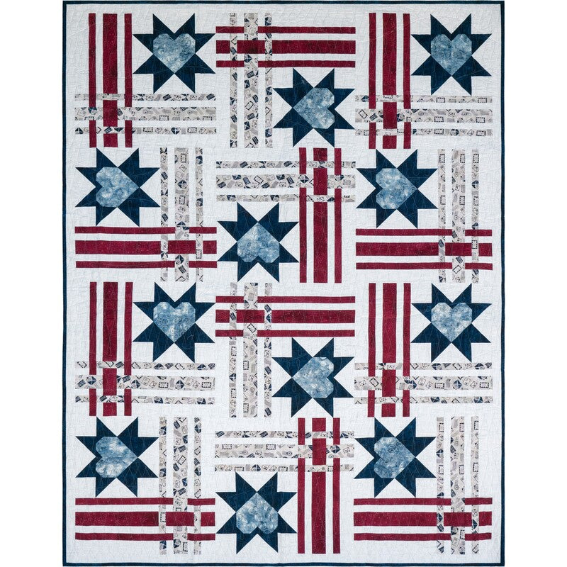 Hometown Hearts was inspired by the designer's Dad’s service, but in a way that feels warm and personal rather than overtly military. The design has a playful, farmhouse-inspired Stars and Stripes feel, with a heart nestled in the center of the star, symbolizing the pride he took in his service and the love at the core of his life. Hometown Hearts reflects his values of faith, family, and freedom. Its cheerful, patriotic design makes it perfect for spreading out at a Fourth of July picnic or gathering with loved ones. Would look great in Christmas or Fall colors also.