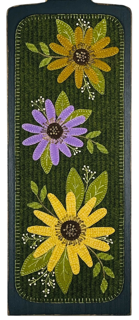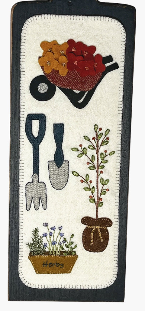 Receive a pattern each month for 12 months to make a 5.5" x 15" applique wall hanging. The applique, originally done in wool, could also be done in cotton using hand or machine applique. The embroidery details add something special to each design. The wall hangings can be displayed on their own, on a wood tavern board, or, my favorite...