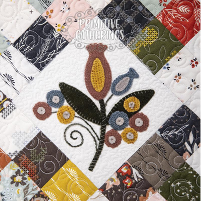 We used a mini charm pack and added some wool embellishments to create this adorable mini quilt.