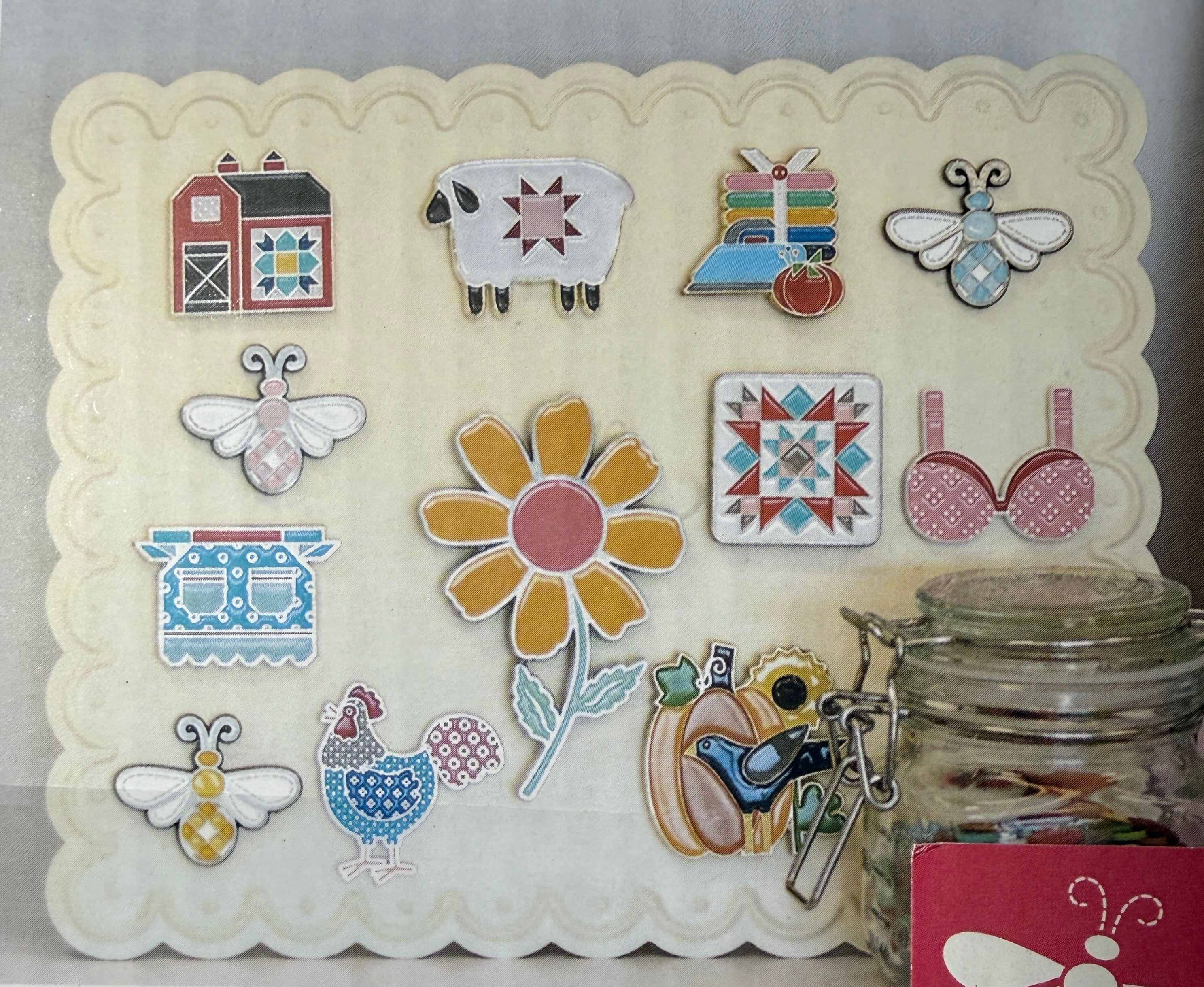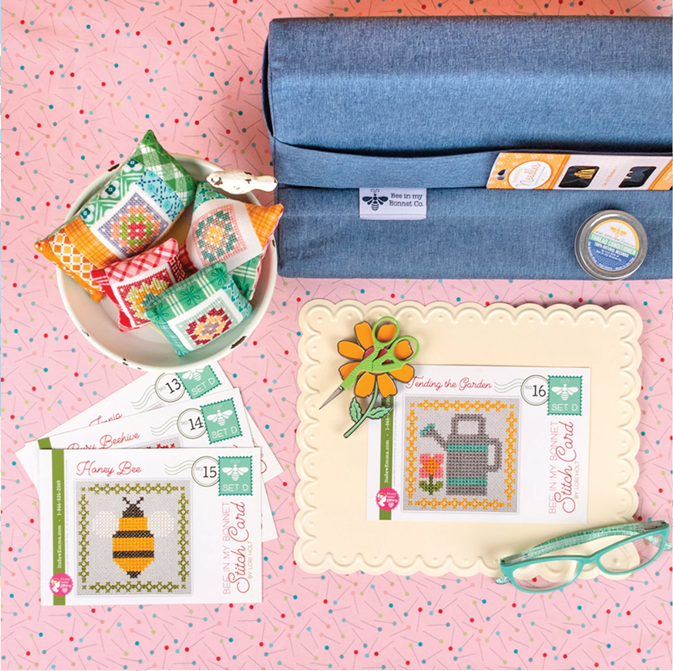 The Cloud Stitchy Board by Lori Holt of Bee in My Bonnet keeps a multitude of things well in hand! Magnetic and trimmed with cute scallops, use any needle minder or small magnet to attach to this sweet surface. Embossed with Lori Holt’s signature bee, this classic shade of Cloud also makes a great backdrop for your needle minder collection!