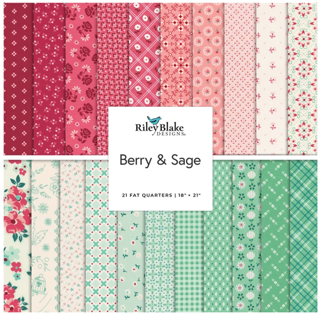 From Lori Holt of Bee in my Bonnet for Riley Blake Designs comes the Berry & Sage collection, the first in the new Lori Holt in Color series. 100% cotton. This bundle includes 21 Fat Quarters, each measuring approximately 18" x 21".