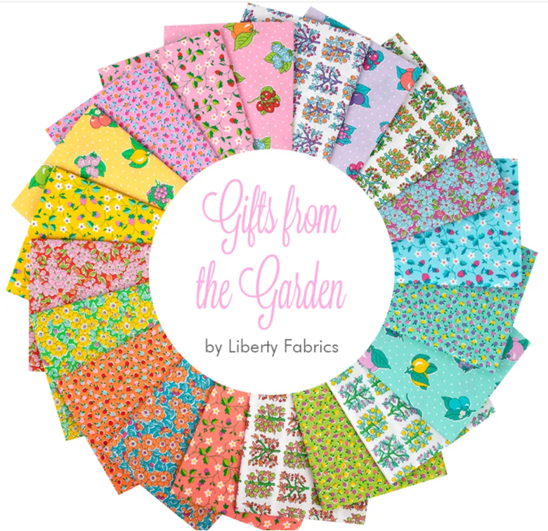 This vibrant fat quarter bundle from Liberty Fabrics showcases the 'Gifts From the Garden' design, featuring an array of garden-inspired prints in a delightful spectrum of colors. Each piece in the bundle captures the essence of nature with detailed floral and fruit motifs, making it perfect for quilters, crafters, and fabric enthusiasts looking to add a touch of the garden to their projects.