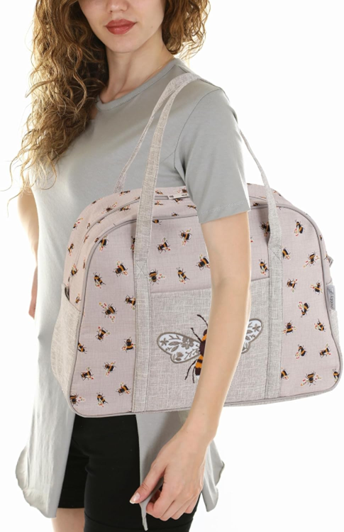 Elevate your sewing adventures with this charming sewing machine bag, featuring a delightful all-over bee print on soft 100% cotton fabric that adds a whimsical touch to your crafting routine. The stylish embroidered bee design on the quick-access front pocket brings an artistic flair, while the internal padding throughout the bag lining ensures extra security for your equipment during transport....